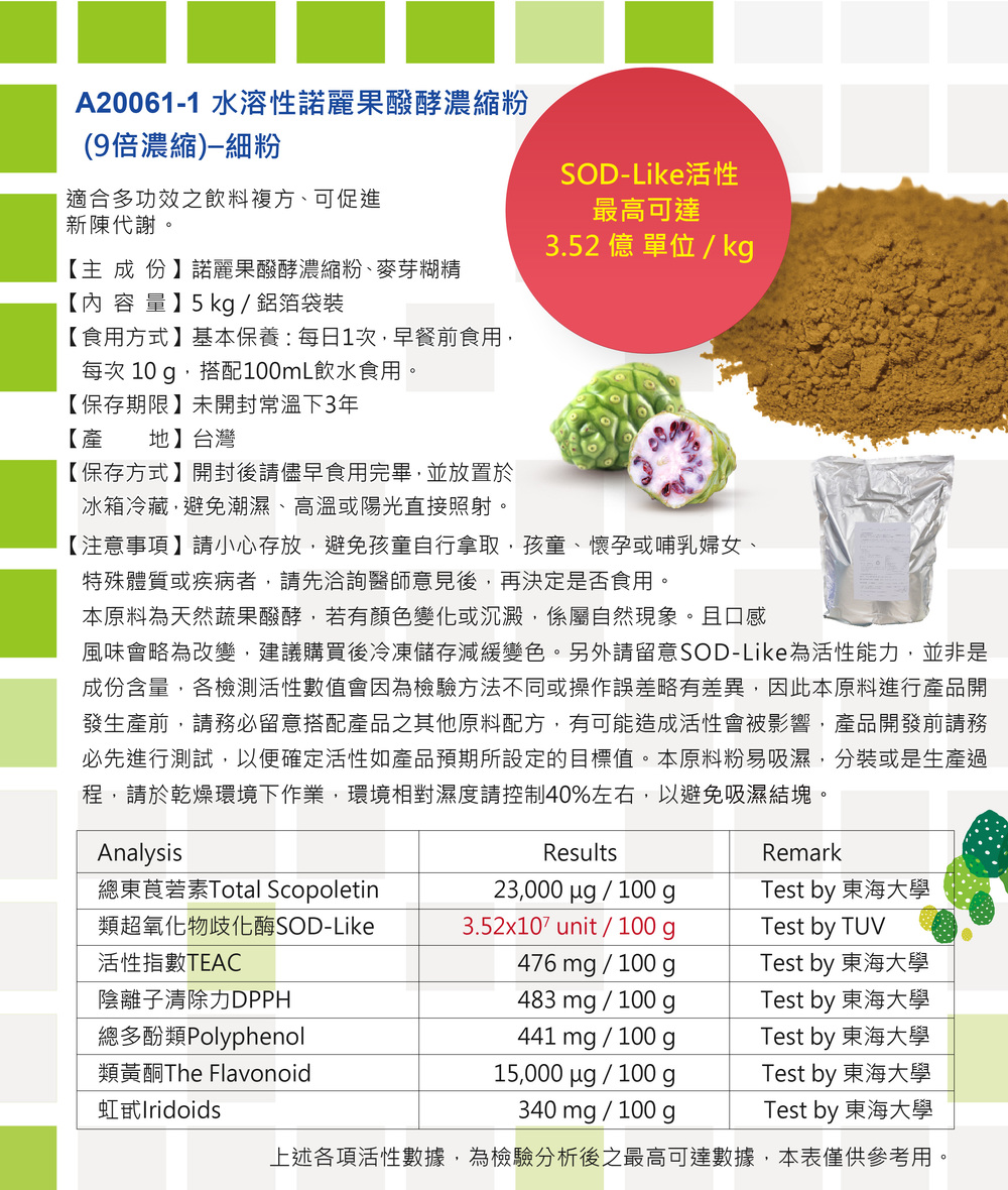 諾麗,SOD-Like,酵素